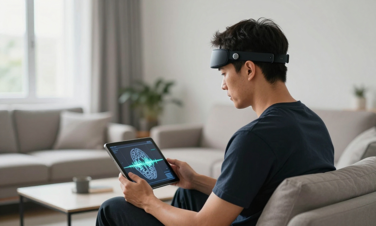 A person researches privacy policies and data practices before selecting a brain-sensing wearable device.